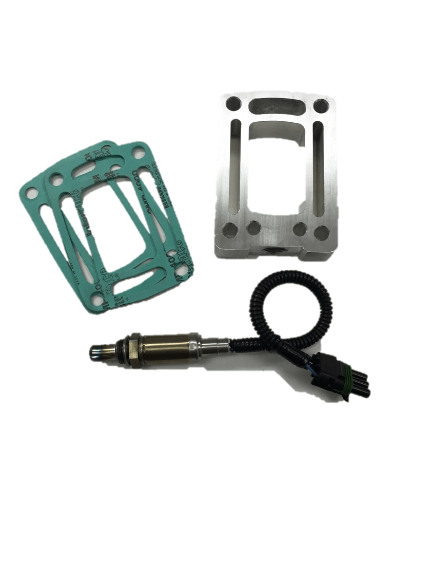 Pictured is a custom made adapter plate for marine applications. An O2 sensor is used when converting an engine to electronic fuel injection and wanting to move from an “open loop” system to a “closed loop” system. The adapter plate installs in between the exhaust manifold and the riser/elbow allowing for the water jackets to still be in place and an o2 sensor to be installed in the still dry exhaust gasses.